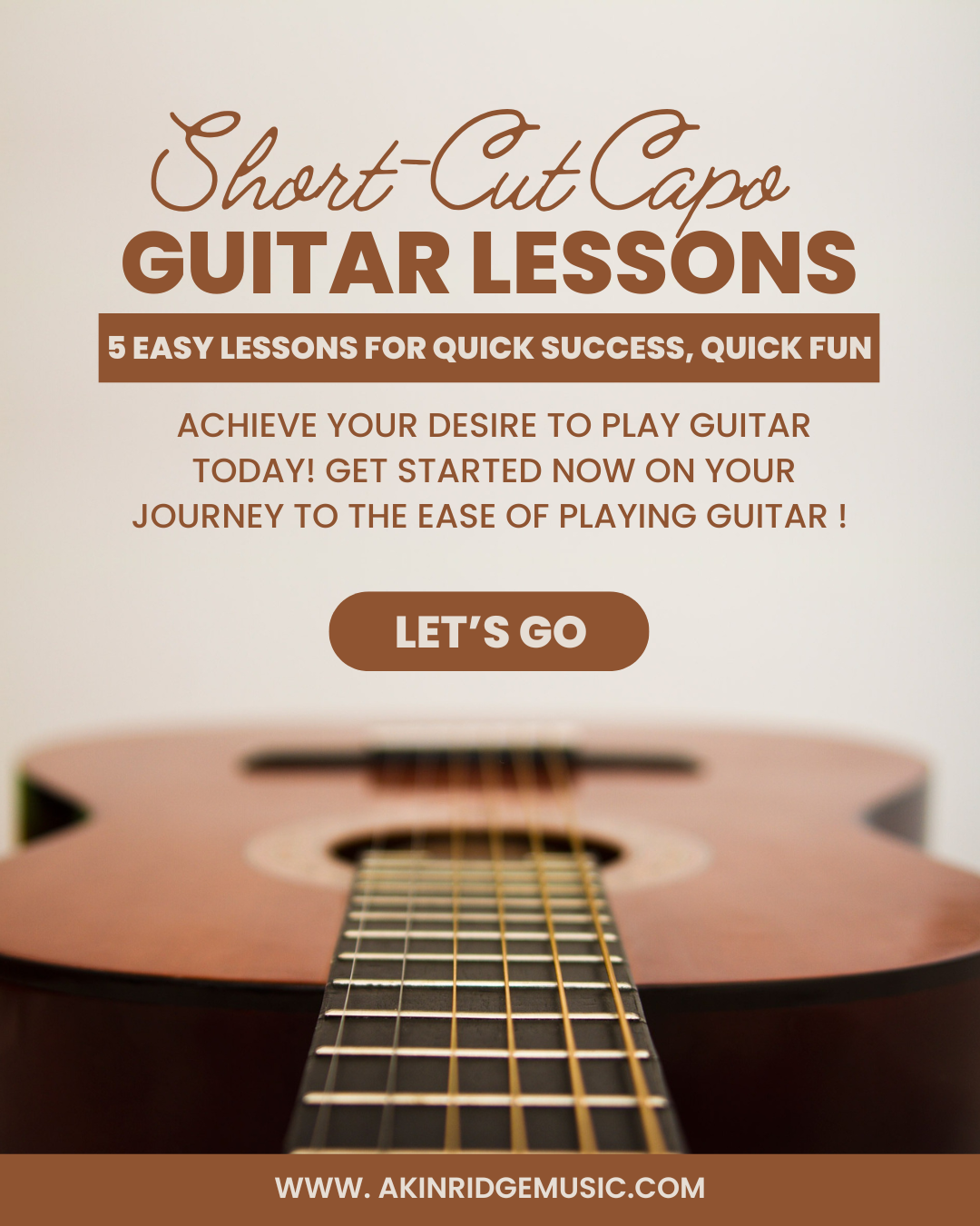 Download Today to Give the Short-Cut Capo Guitar Method a Try and FINALLY Meet Your Goal to Play Guitar! You Will Play 5 Songs in 1 Hour or Less!